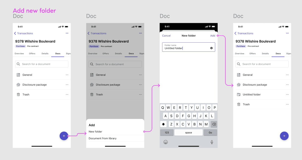 Documenting this flow let me turn annotations, toasts, sheets, and grouping behaviors into reusable design system components.