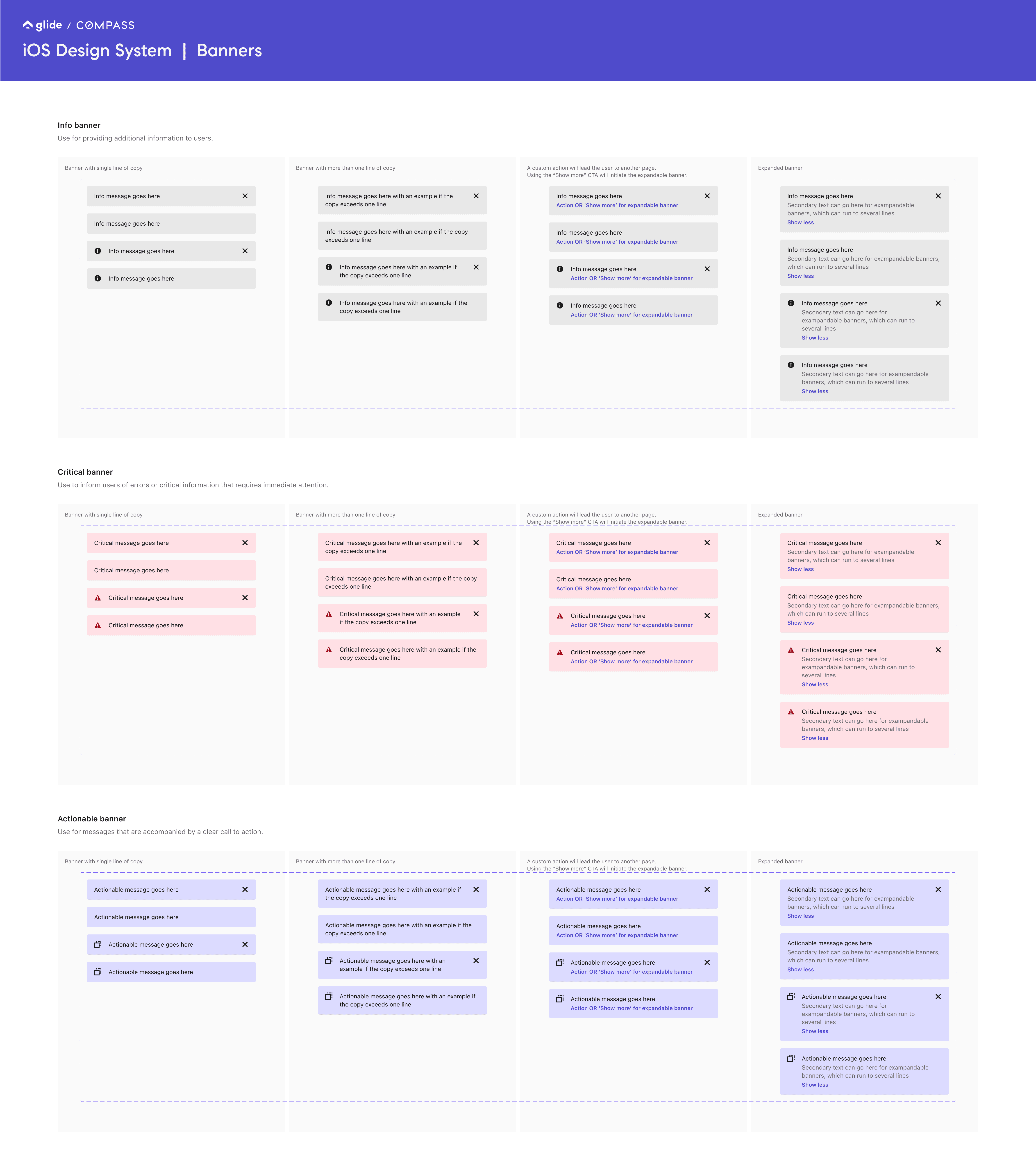 I designed, planned, tested, and documented new components while mapping dependencies and best practices. I also ran research sessions with Glide users to identify gaps and opportunities, and I onboarded designers and engineers to the Glide DS.