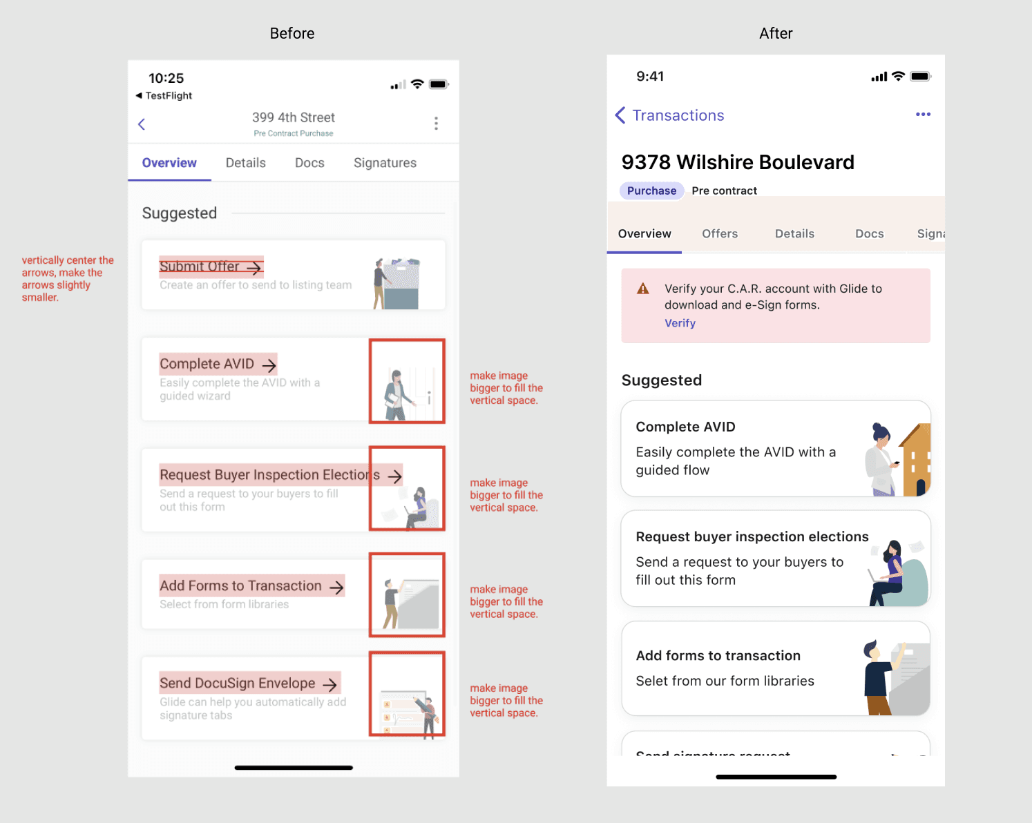 The iOS app had inconsistent components and UI that felt heavy and not intuitive. This created friction for brokers who relied on the app in fast, high-pressure moments, and it made the app harder for engineers to maintain. To scale Glide needed a design system that brought consistency to mobile, improved engineering workflows, and aligned to Compass's design systems.